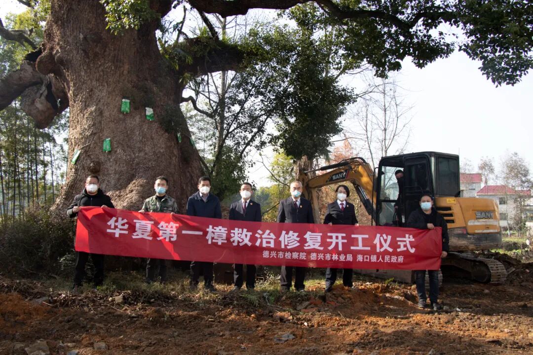 检察干警参加华夏第一樟治修复开工仪式