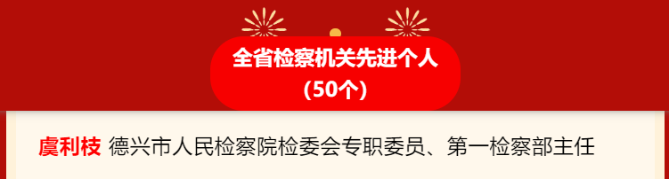 近期,江西省人民检察院开展了全省检察机关首届先进集体先进个人评选表彰活动。经民主推荐、逐级审核、征求意见、实地考察、集体研究,德兴市人民检察院检委会专职委员、第一检察部主任虞利枝同志被评选为“全省检察机关先进个人”。