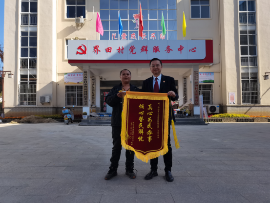 “防贫保险发下来了,真的感谢您,余书记,为了解决我的问题,您忙前忙后了这么长时间,这面锦旗您一定要收下!”近日,德兴市界田村脱贫户汪长生激动的将一面写着“真心为民办事,倾心为民解忧”的锦旗送到德兴市检察院张村乡界田村驻村第一书记余烜手中。
