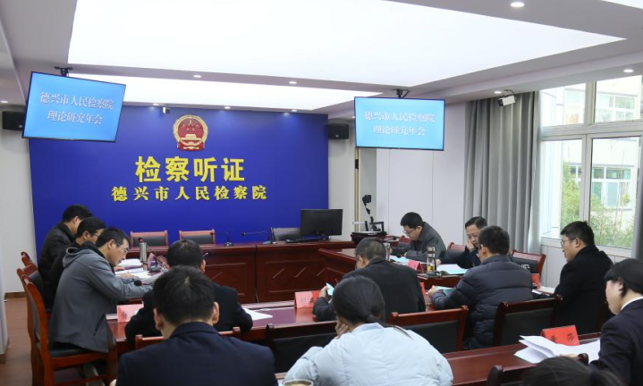 12月14日下午,德兴市人民检察院召开2023年检察理论研究年会,会议研究部署以习近平法治思想为指引加强检察理论研究、强化法律监督工作,为检察人才开展理论研究工作注入源头活水,德兴市检察院党组书记、代检察长何建平出席会议。