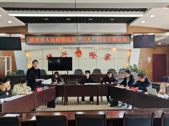 为展现德兴市人民检察院青年女干警自强不息、坚韧刚毅、智慧豁达的新时代女性风采。3月8日上午,该院召开庆“三八”妇女节辩论赛。本次辩论赛由4支辩论队伍,每支队伍三名辩手组成,辩手们紧紧围绕着辩题展开激烈的辩论,辩手们唇枪舌战,在电光火石间迸发出智慧的火花,赢得现场观众的阵阵喝彩和思想共鸣,现场气氛热烈。文字:方健宇