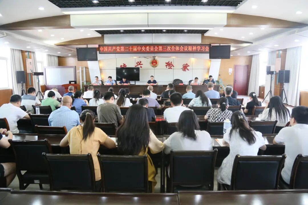 7月19日,德兴市人民检察院召开中国共产党第二十届中央委员会第三次全体会议精神专题学习会。院党组副书记、副检察长孙勇领学,全院检察干警参会。