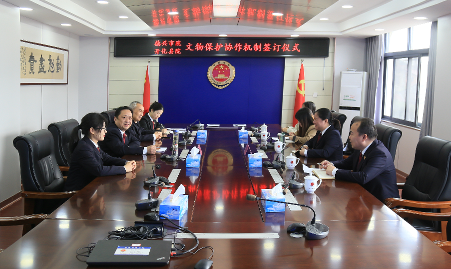 为深入贯彻党的二十大关于“推进文化自信自强,铸就社会主义文化新辉煌”的战略部署,全面落实习近平总书记关于文物工作系列重要指示批示精神,切实履行检察机关“公共利益代表”职责使命。近日,江西省德兴市人民检察院与浙江省开化县人民检察院联合举行文物保护公益诉讼检察协作机制签约仪式。共同签署了《关于建立文物保护公益诉讼检察跨区域协作机制的意见》(以下简称《意见》),切实加强两地文物的保护、管理与利用,特别是对毗邻区域白沙关、壕岭关、银岭关等承载红色基因的革命文物的系统性、协同性保护。