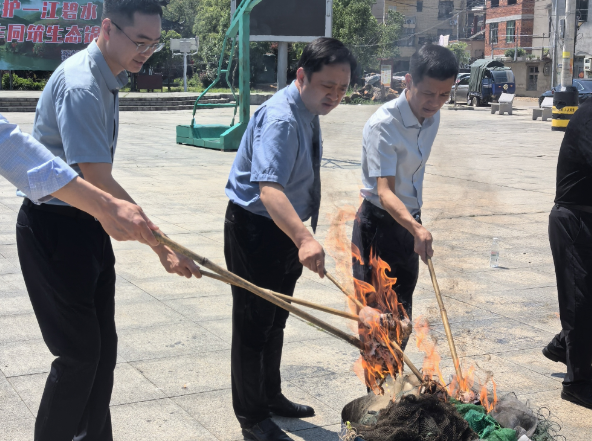 活动伊始,现场举行非法渔具集中销毁仪式。在渔民代表及群众见证下,人大代表、检察官、相关部门职能人员将近百件电鱼设备、地笼网、绝户网等禁用渔具投入焚烧炉。该院副检察长孙勇同时对群众以案释法:“这些渔具对鱼类资源破坏极大,是导致水域‘荒漠化’罪魁祸首之一,非法捕捞不仅面临刑事行政处罚,还应当承担生态环境修复资源赔偿。”据悉,近三年,该院通过公益诉讼立案调查破坏资源案件35起,追偿生态修复费用213万元,形成强有力震慑。