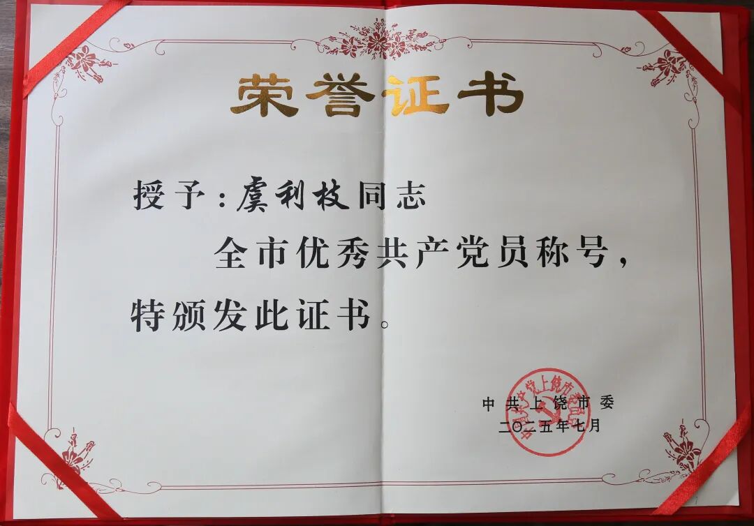 德兴市人民检察院副科级检察委员会专职委员、一级检察官虞利枝同志荣获上饶市优秀共产党员称号